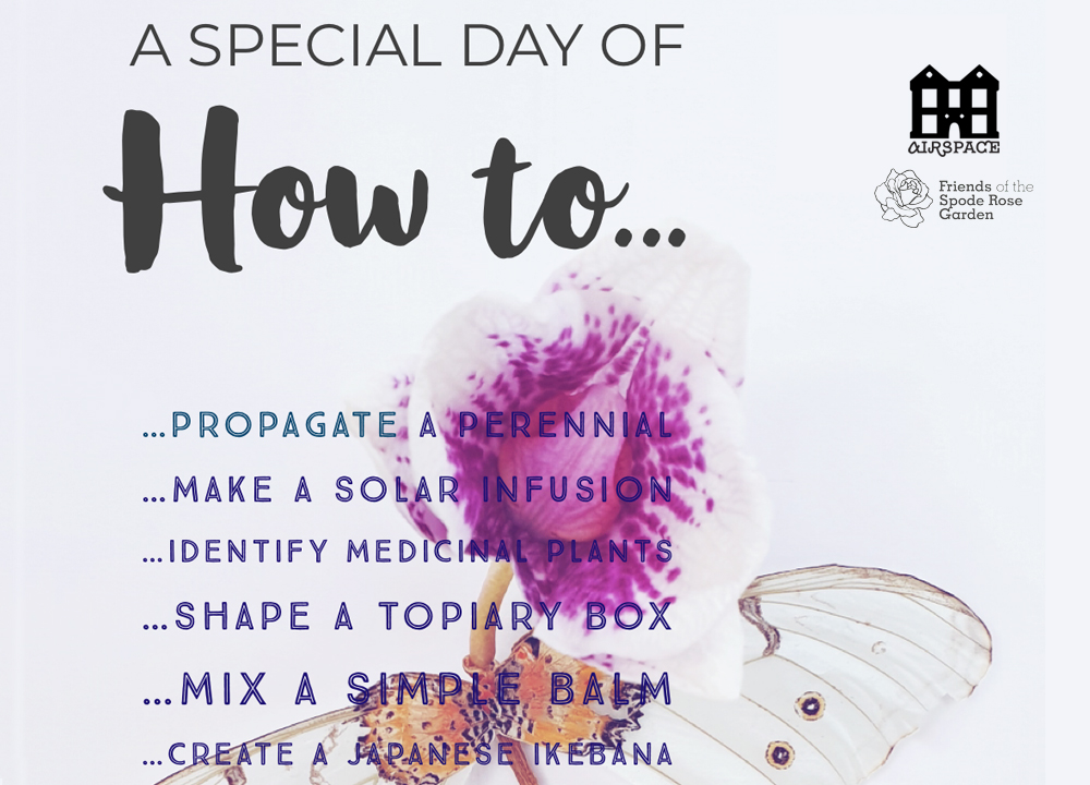 Our HOW TO event is an opportunity for people to visit the garden and pick up some new skills. We will have hands on activities for all ages to take part in and try; both horticultural and creative. Plus there will be a PLANT SALE and JAMS and CHUTNEYS By Beryl available: all to support the Spode Rose Garden.
