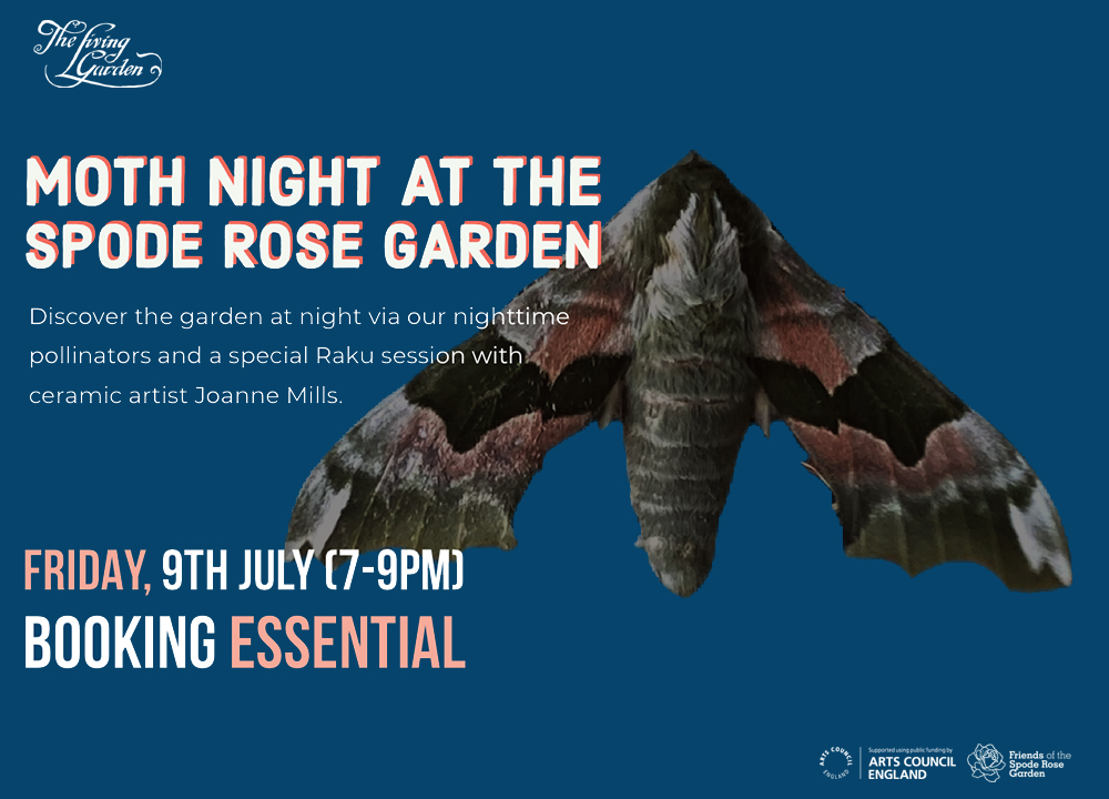 Ceramic artist Joanne Mills has been undertaking a project in The Spode Rose Garden, to develop a permanent responsive artwork, which will be installed ahead of the British Ceramics Biennial Festival, September 2021. This Moth Night is a chance to hear about the Ceramic Moon Planters Jo has been working on, and to experience the garden at night.