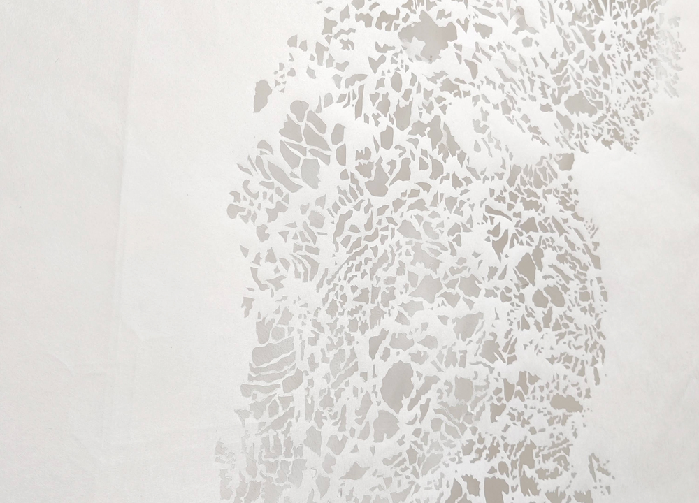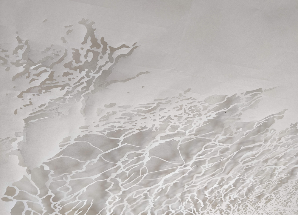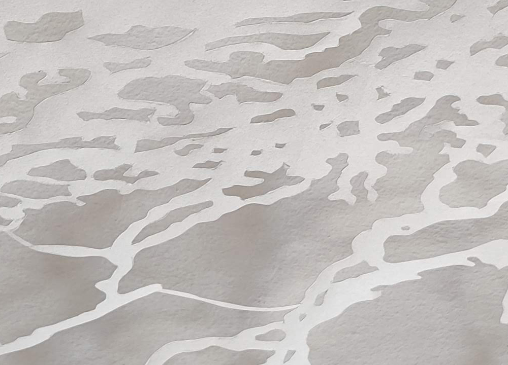 Measuring States #I – # II are two hand-cut paper panels. Drawings created through absence, they are intended as the beginning of a conversation to invite considerations about how we imagine unseen landscapes and read invisible traces.